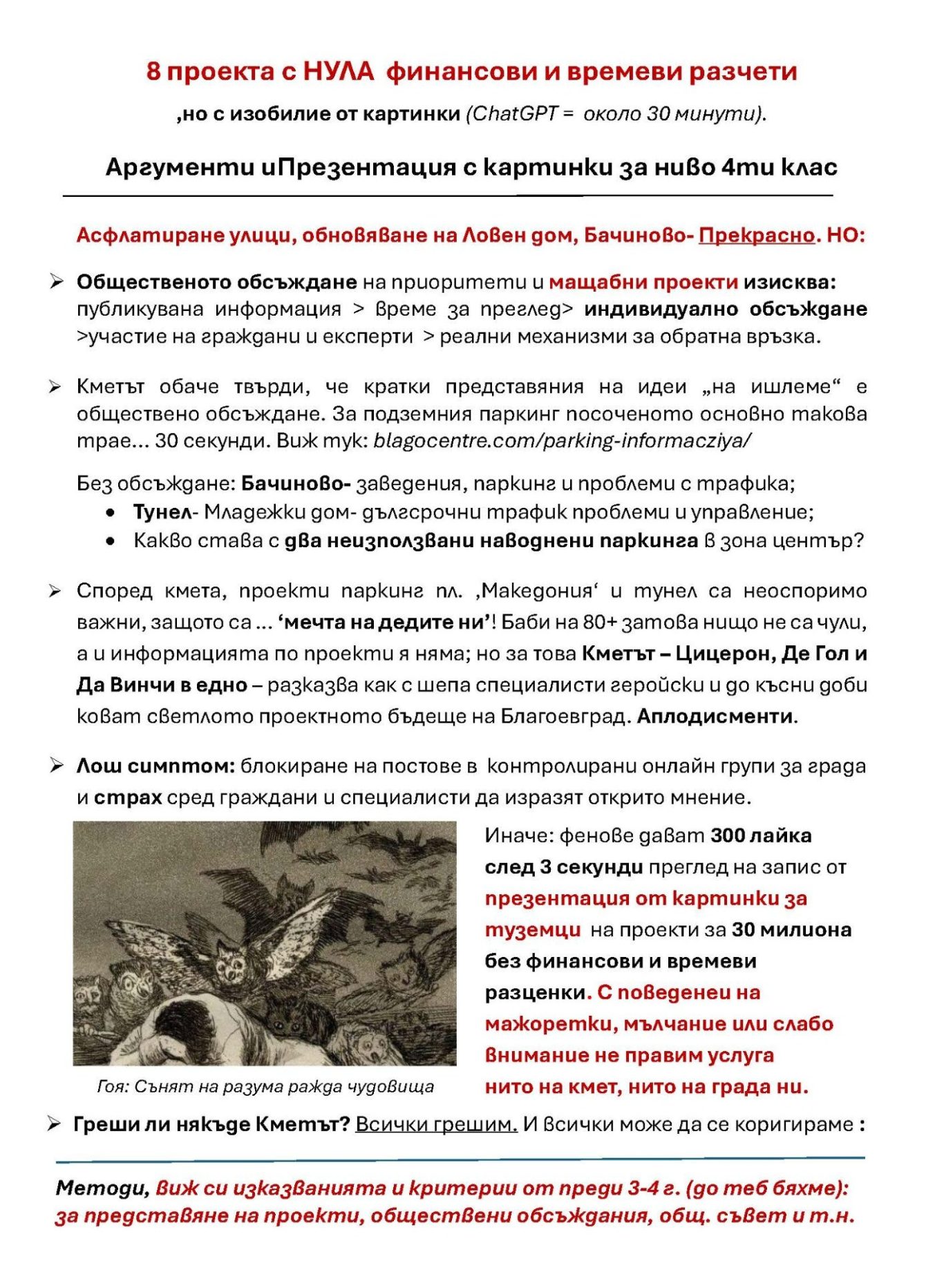 Пак да кажем: Кметът има идеално понятие от критерии за обшествено обсъждане и представяне на проекти. Сам ги е разяснявал. Остава да си ги преговори.