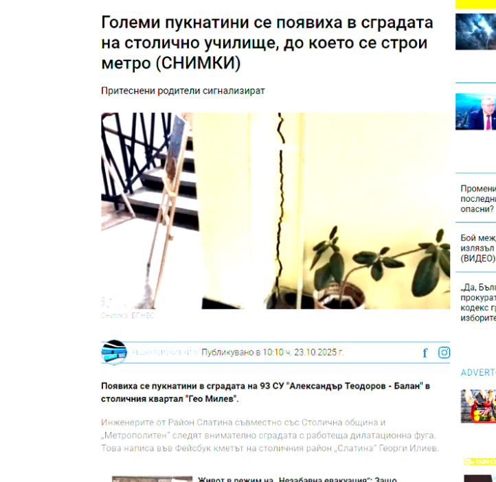 Рисковете от напукване на сгради са съществени и са свързани както с геоложките дадености, така и със самите строителни дейности. Ситуацията с училището в София, въпреки уверенията на фирмата изпълнител, поражда сериозни притеснения.